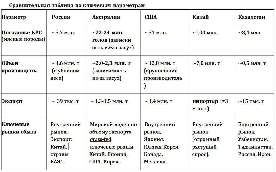 Вывод:Австралия — это действенный образец для подражания и главный тактический соперник России на пути превращения в мясную сверхдержаву. Россия обладает сравнимой ресурсной базой и стратегическим логистическим преимуществом в Азии. Однако для реальной конкуренции ей необходимо: